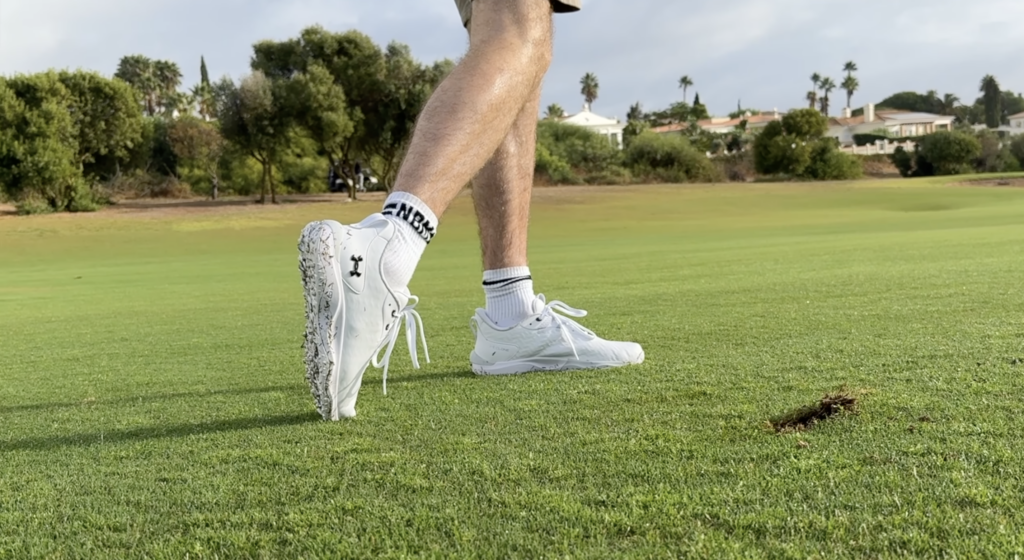 In terms of stability, full swings felt planted. There was no sliding inside the shoe, and the overall lockdown effect was noticeable. The outsole provides a good amount of flex — enough to move naturally while still resisting excessive twisting.