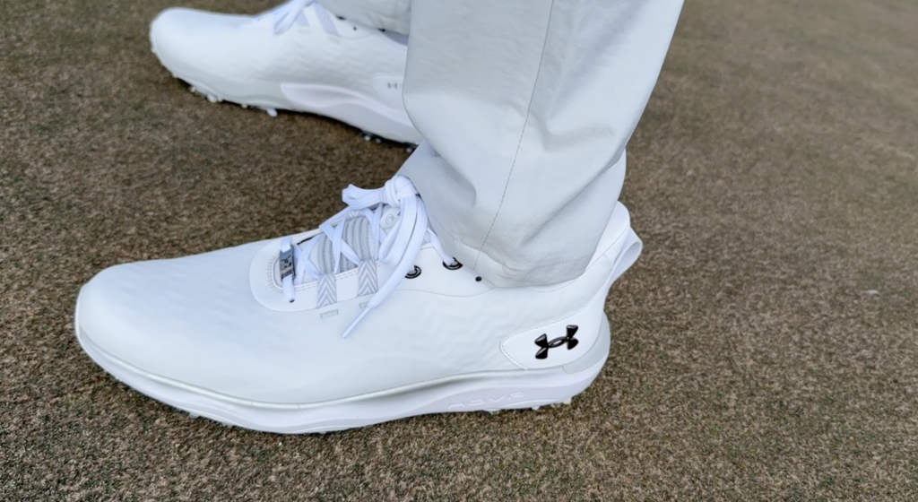 This is not a traditional leather golf shoe. The upper is a multi-layer microfiber material, and while some golfers may prefer premium leather, leather cannot deliver the auxetic structure Under Armour is using here.