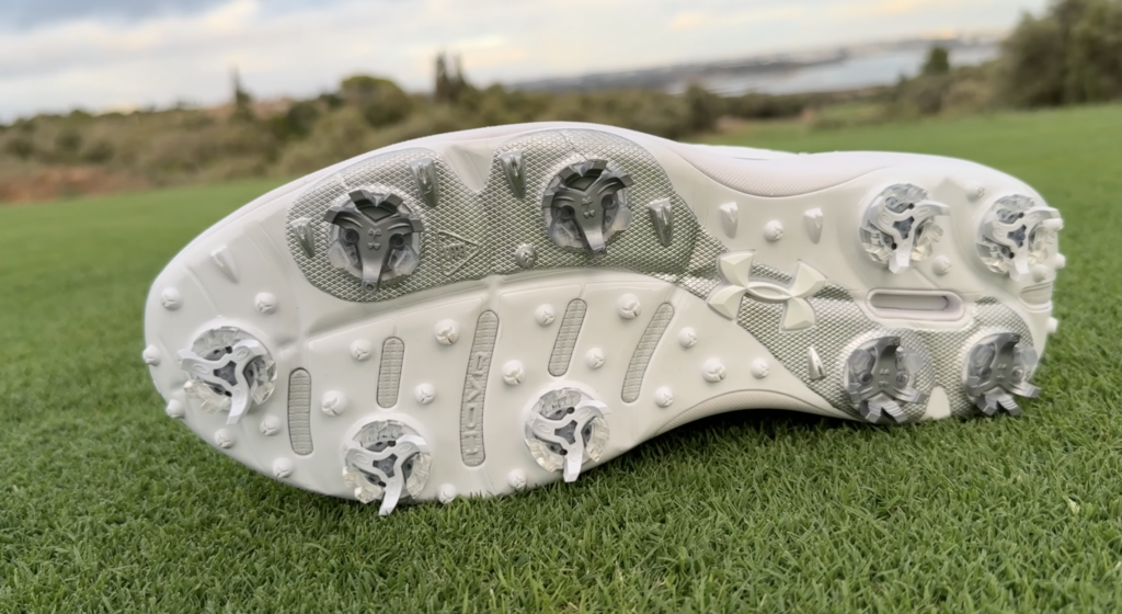 The spiked version uses a nine-spike setup that feels aggressive and secure. Under Armour continues to use rotational resistance spikes positioned around the perimeter. While no specific advantage was clearly noticeable, there was no downside either, and traction was strong throughout testing.